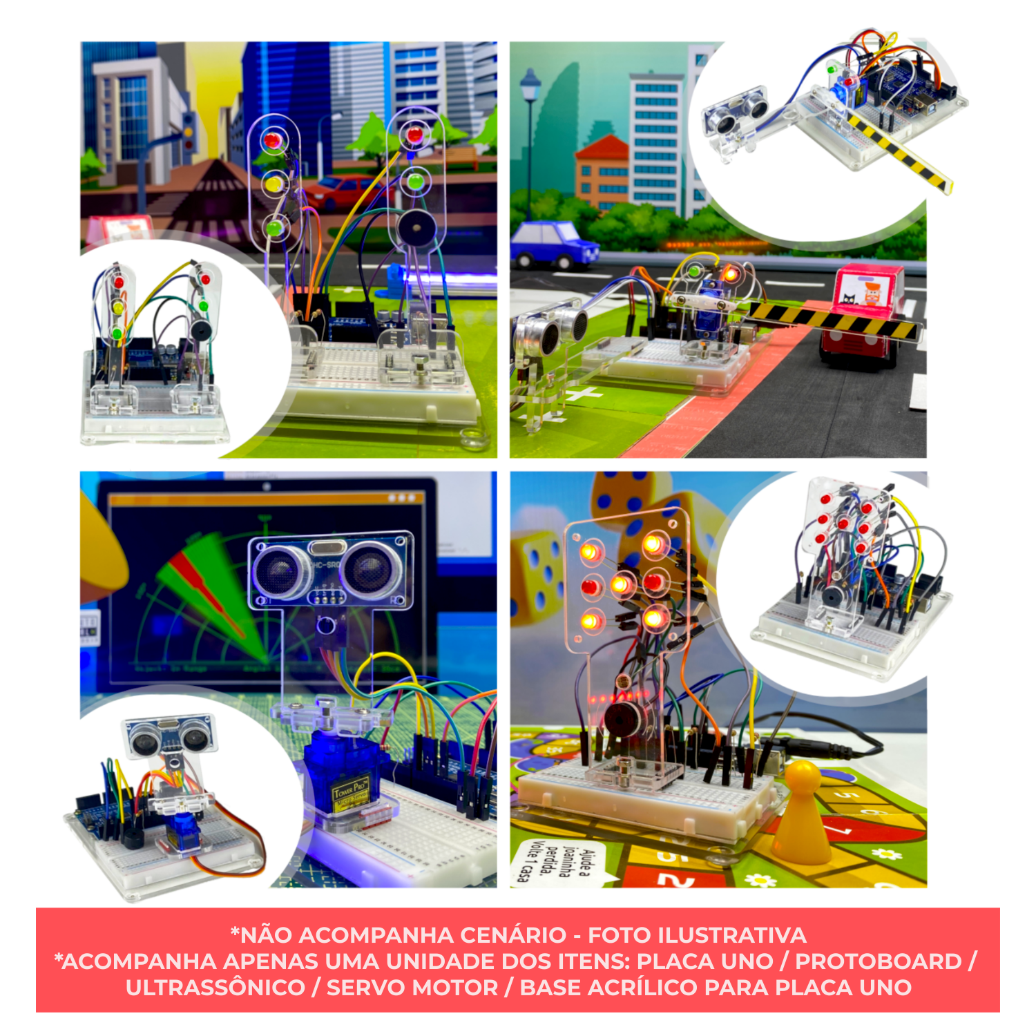 Os kits são ideais tanto para iniciantes, quanto para entusiastas da eletrônica e programação, proporcionando uma experiência educacional completa e envolvente. Com os kits, você terá tudo o que precisa para montar seus projetos de forma fácil e elegante, graças aos componentes em acrílico que melhoram a apresentação e portabilidade.